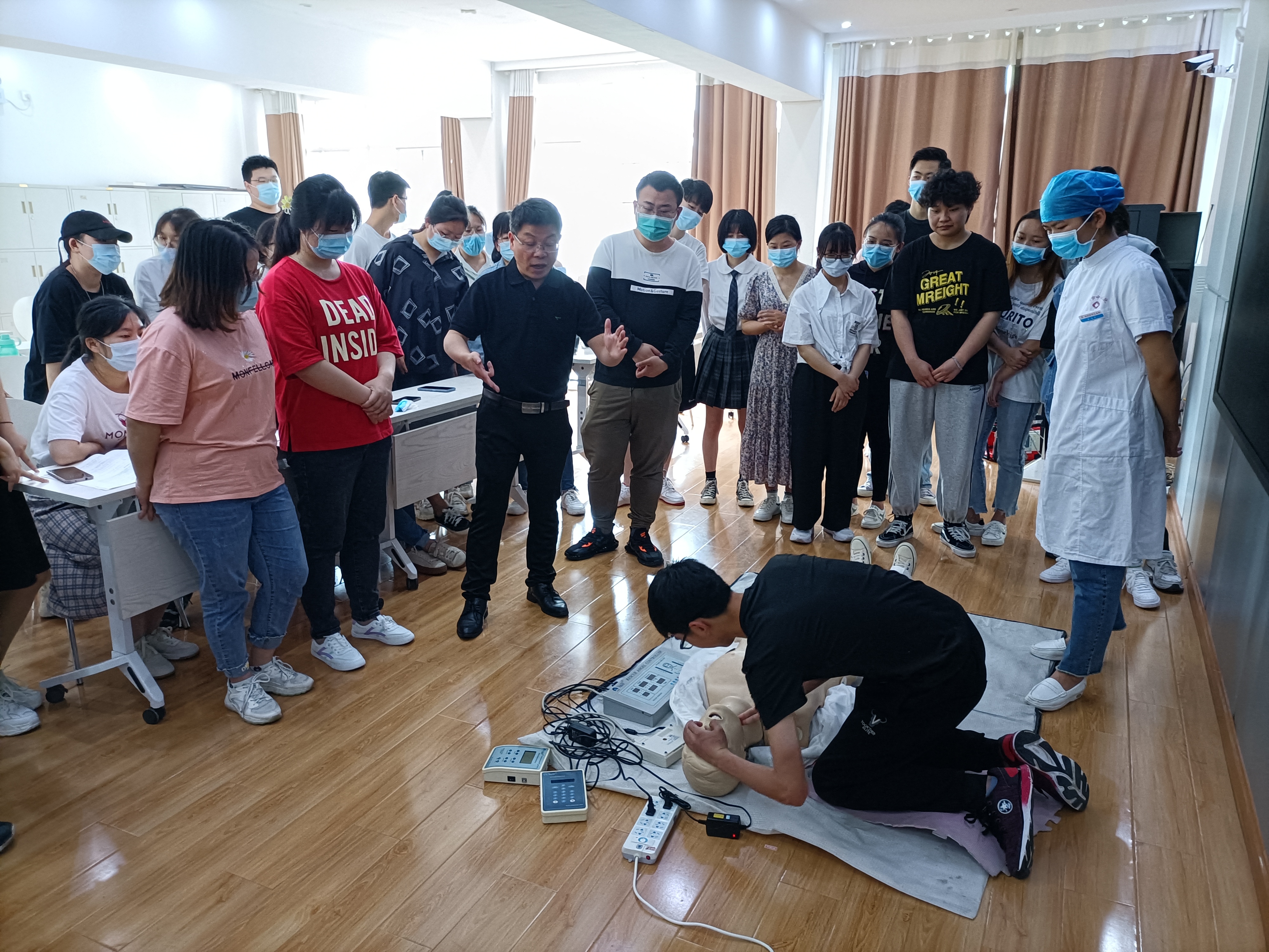 前期,科教科邀请了专业培训机构为学员开展了为期一天的应试流程介绍和病例分析、三腔二囊管插入术、无菌技术基本操作、脓肿切开术培训。后期,根据大纲考站的第一考站(辅助检查及影像学判读)、第三考站(体格检查)、第六考站(基本操作技能)要求,分批次邀请了相关科室负责人指定的心电图室、放射影像科、检验科、全科医学科、骨三科、心内科、消化内科、呼吸内科、重症医学科、妇科、产科及护理示教室共计26名老师进行了37场次的授课及指导训练。