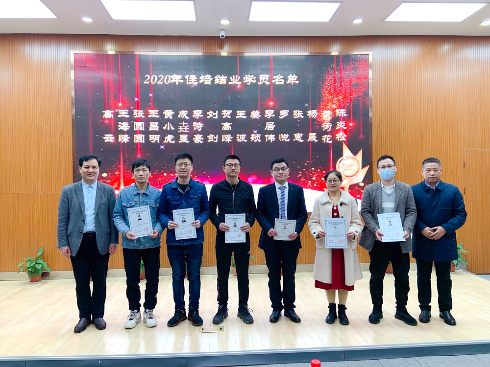结业典礼上,副院长陈军宣读了2020年住培结业医师名单,副院长李志红、江杰为每位结业住培医师颁发结业证书,并亲切合影。